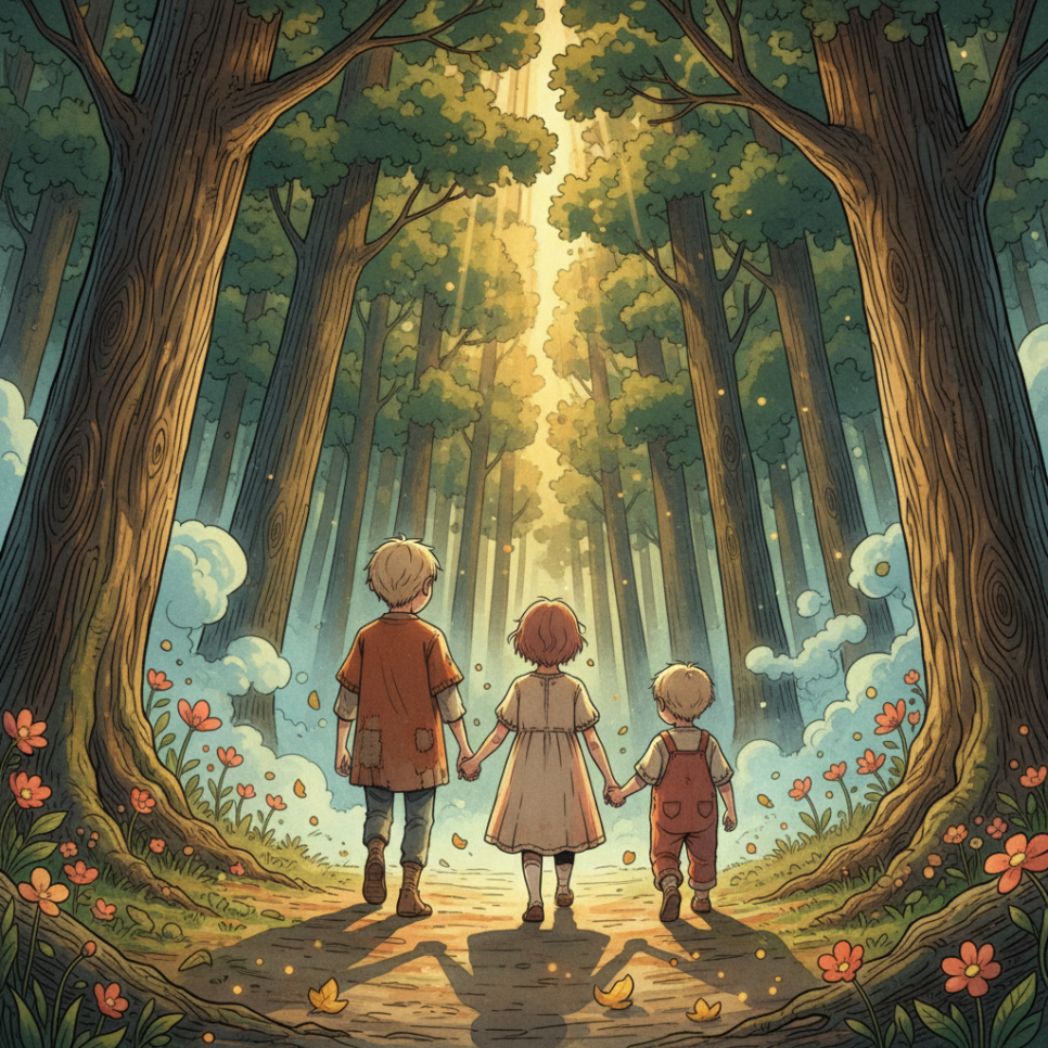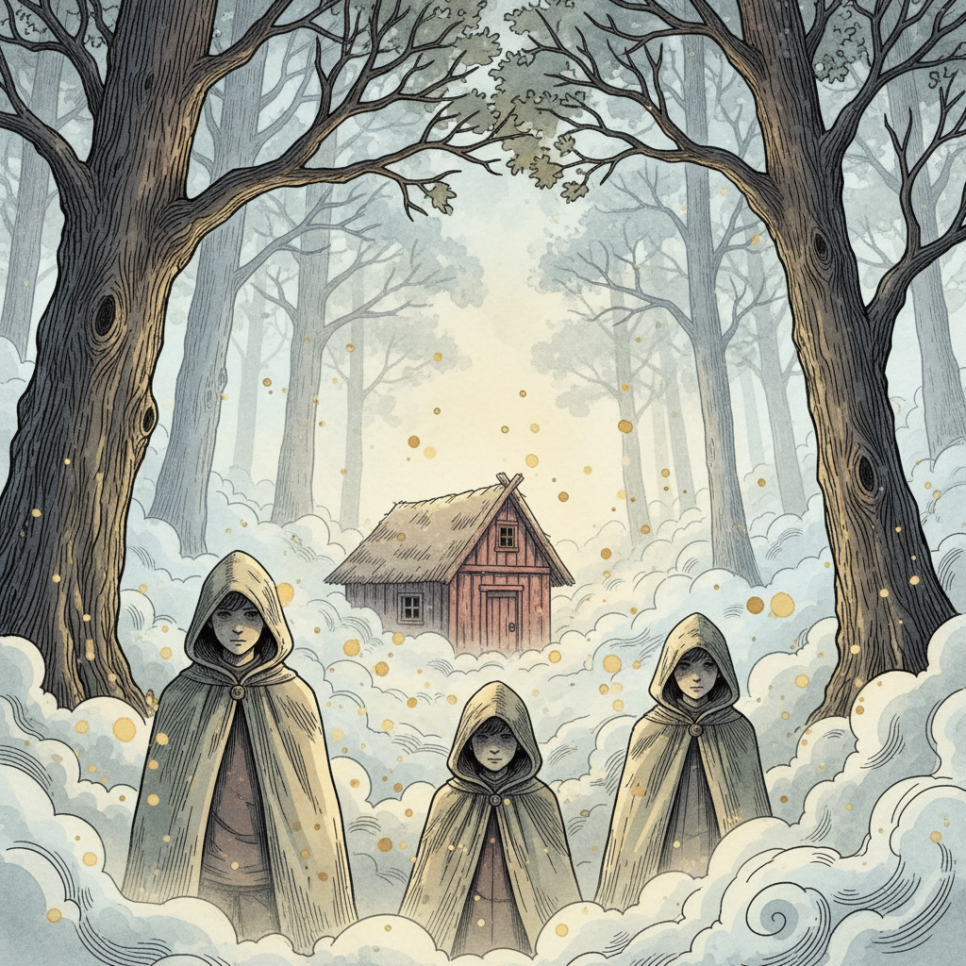 깊고 푸른 독일 숲의 가장자리에는 작은 오두막 하나가 있었다. 그곳에는 부모를 일찍 여의고 서로 의지하며 살아가는 세 형제가 살고 있었다. 첫째는 힘이 세고 성실했지만 마음속에 늘 불만이 쌓여 있었고, 둘째는 영리했으나 계산이 빨랐다. 막내는 말수가 적고 겁이 많았지만, 형들을 누구보다 사랑했다. 세 형제는 나무를 해 오고, 열매를 따고, 눈이 오는 날에는 서로의 손을 꼭 잡으며 추위를 견뎠다. 하지만 숲이 깊어질수록 형제들의 마음도 조금씩 달라지고 있었다. 더 넓은 세상, 더 많은 돈, 더 쉬운 삶에 대한 바람이 형들의 마음속에서 자라나기 시작한 것이다. 막내는 그런 형들의 눈빛이 변해가는 것을 느끼며 말없이 숲을 바라보았다.