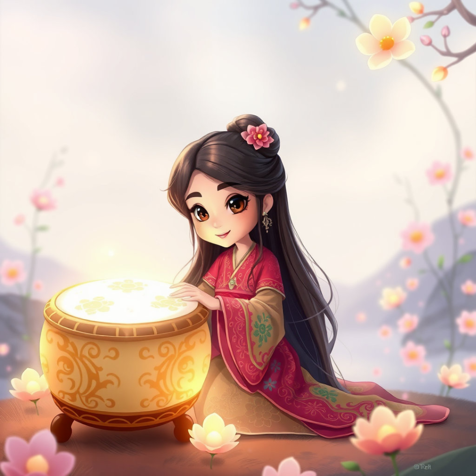 북 치는 공주는 아름다운 얼굴만큼이나 맑고 고운 마음씨를 가진 소녀였습니다. 그녀는 날마다 그 신비한 북 곁에 앉아 북소리를 듣는 것을 좋아했습니다. 둥둥 울리는 북소리는 마치 낙랑을 지켜주는 든든한 수호신과 같다고 생각했기 때문입니다. 공주는 때로는 북에 기대어 잠이 들기도 하고, 때로는 북소리에 맞춰 조용히 노래를 부르기도 했습니다. 그녀에게 그 북은 단순한 악기가 아닌, 낙랑의 평화를 상징하는 소중한 존재였습니다.
