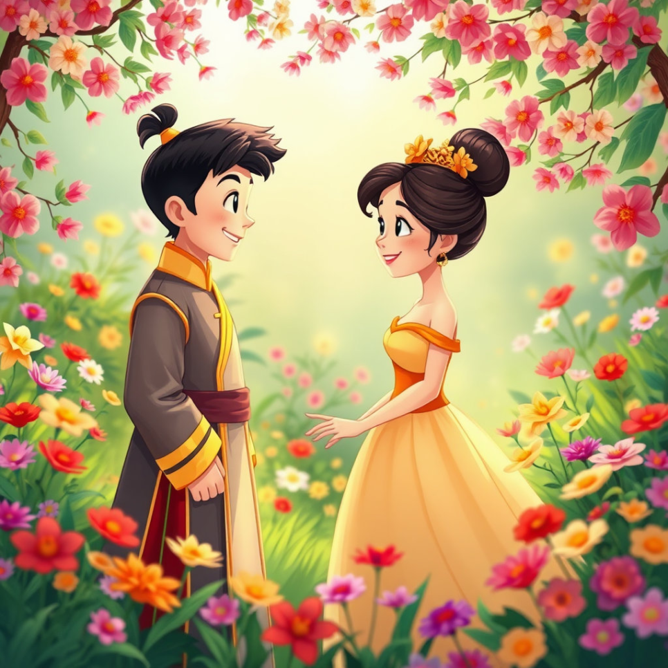 공주 역시 씩씩하고 용감해 보이는 호동 왕자에게 호감을 느꼈습니다. 낯선 땅에서 만났지만, 두 사람은 마치 오래전부터 알고 지낸 사이처럼 편안하게 이야기를 나누었습니다. 호동 왕자는 자신의 이름과 고구려의 왕자라는 사실을 숨긴 채, 평범한 사냥꾼이라고 소개했습니다. 함께 꽃밭을 거닐고, 시냇가에서 물장구를 치며 두 사람은 시간 가는 줄 모르게 서로에게 빠져들었습니다. 그것은 마치 운명처럼, 거부할 수 없는 강렬한 이끌림이었습니다.