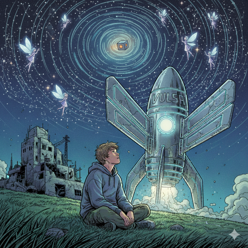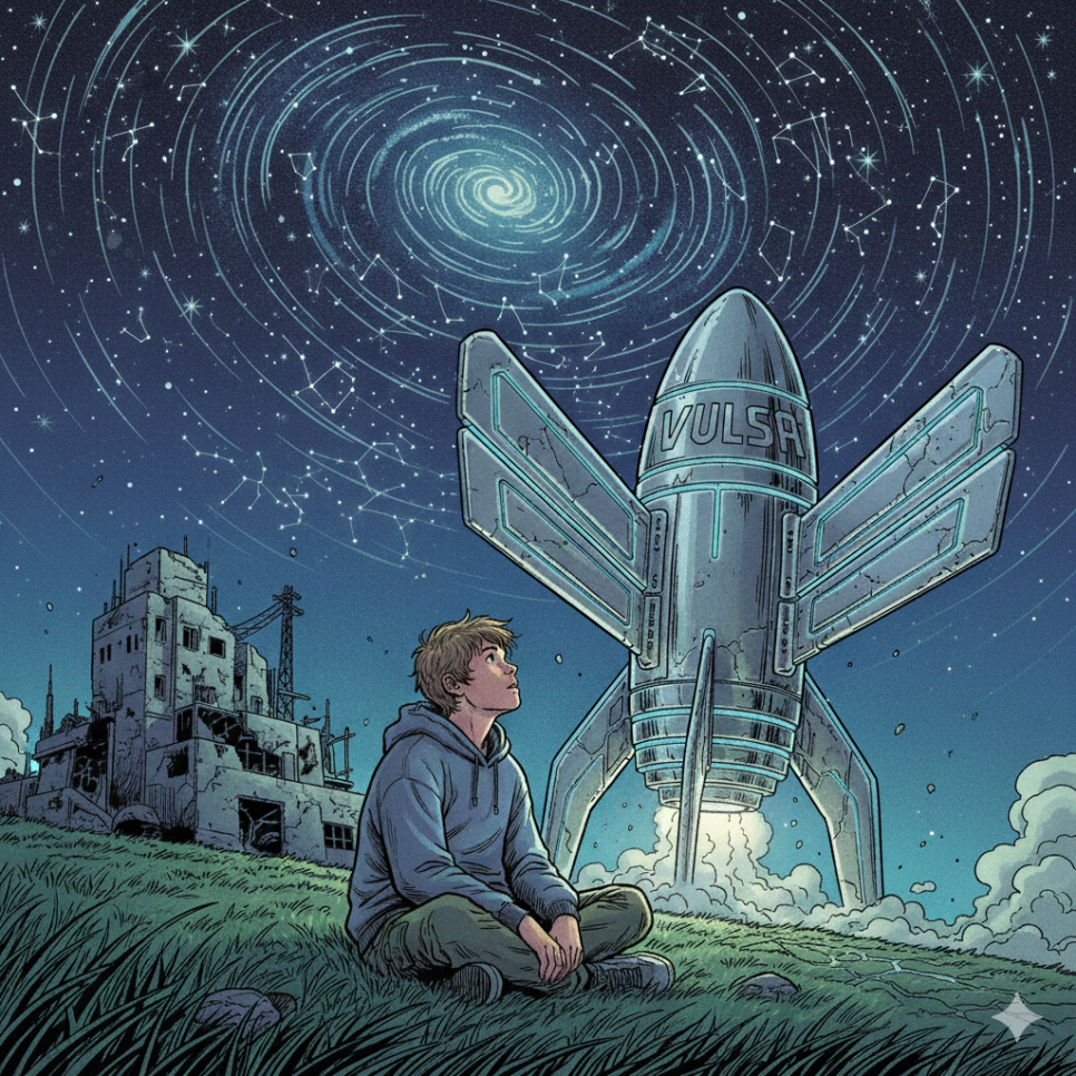 그러던 어느 날, 마을 근처 abandoned 연구소에서 이상한 소리가 들렸어요. 라온이 조심스레 문을 열자, 커다랗고 은빛으로 빛나는 로켓이 누워 있었지요. 로켓의 몸체에는 ‘VALSA’라는 글자가 새겨져 있었어요.