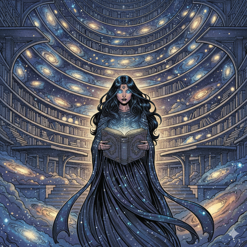 깊은 우주 속, 은하수의 한쪽 구석에 거대한 빛의 도서관이 있었어요. 별빛들이 페이지처럼 반짝이며 흐르는 공간이었지요.