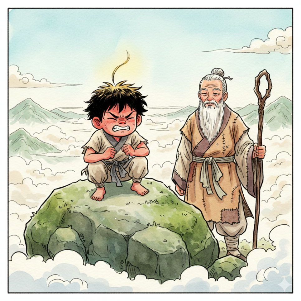 "머털아! 오늘은 저 아래 계곡에서 바위 100개를 옮겨오너라!" 누더기 도사님의 호령에 머털이는 입이 댓 발이나 튀어나왔어요. 도술로 바위를 가볍게 만들 법도 한데, 도사님은 꼭 맨손으로 옮기라고 하셨거든요. 땀을 뻘뻘 흘리며 바위를 나르는 머털이의 등 뒤로 도사님의 잔소리가 이어졌어요. "바위 하나를 옮길 때마다 그 무게를 느껴라. 네 마음의 무게가 그 바위보다 가벼워야 비로소 도술이 시작되는 법이니라."