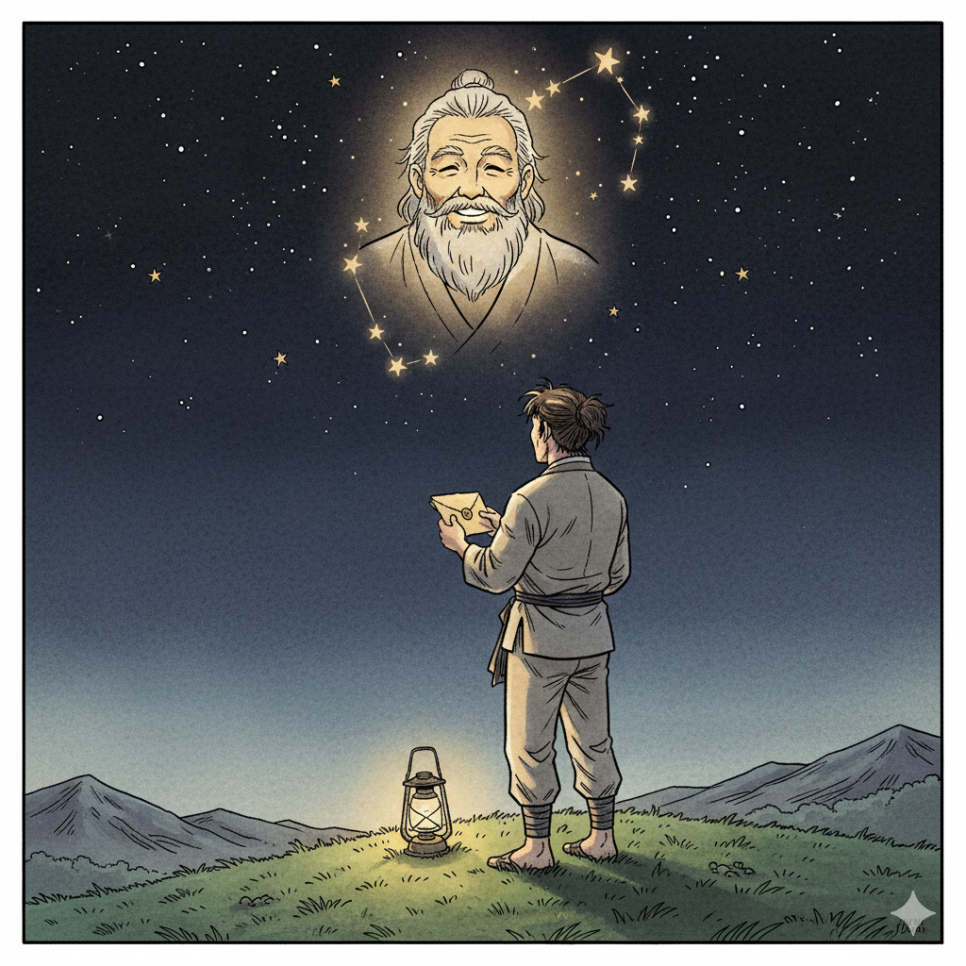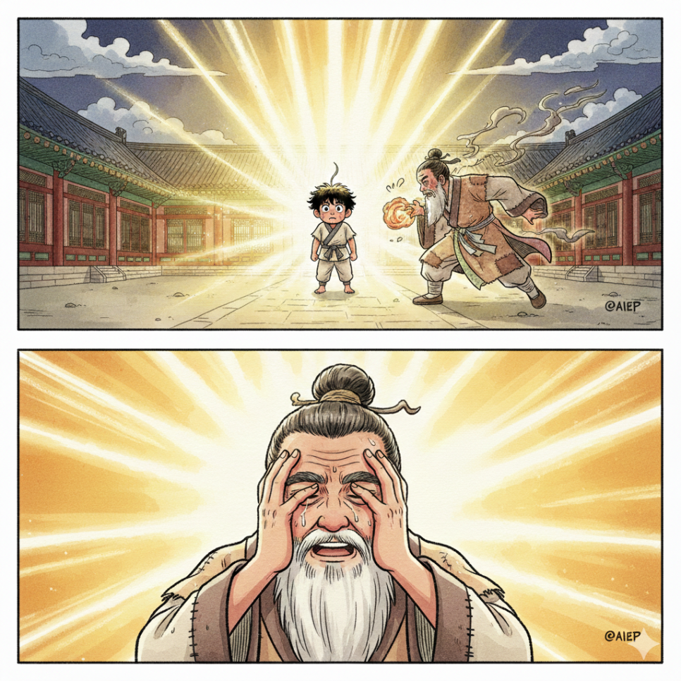 어느덧 시간이 흘러 머털이도 어엿한 어른 도사가 되었어요. 도사님은 머털이에게 낡은 서찰 한 장을 남기고 진짜 신선이 되어 하늘로 떠나셨죠. 서찰에는 이렇게 적혀 있었어요. [가장 큰 도술은 잘난 체하는 기술이 아니라, 끝까지 자신을 낮추는 겸손이란다. 네 마음이 낮아질수록 네 도술의 키는 커질 것이다.]