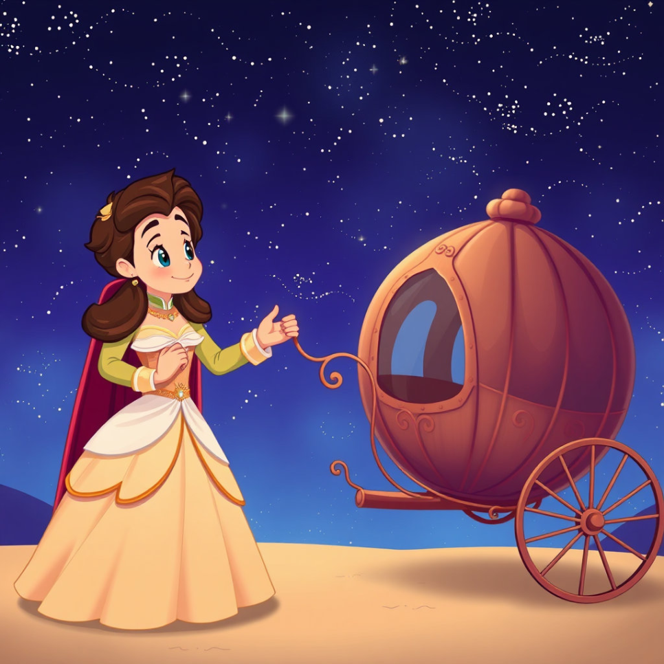클라라는 기쁜 마음으로 고개를 끄덕였어요. 그러자 방 안의 벽이 스르륵 사라지고, 눈앞에는 반짝이는 별들이 가득한 밤하늘이 펼쳐졌어요. 왕자님과 클라라는 커다란 호두껍데기로 만든 멋진 마차를 타고 하늘을 향해 날아올랐답니다.