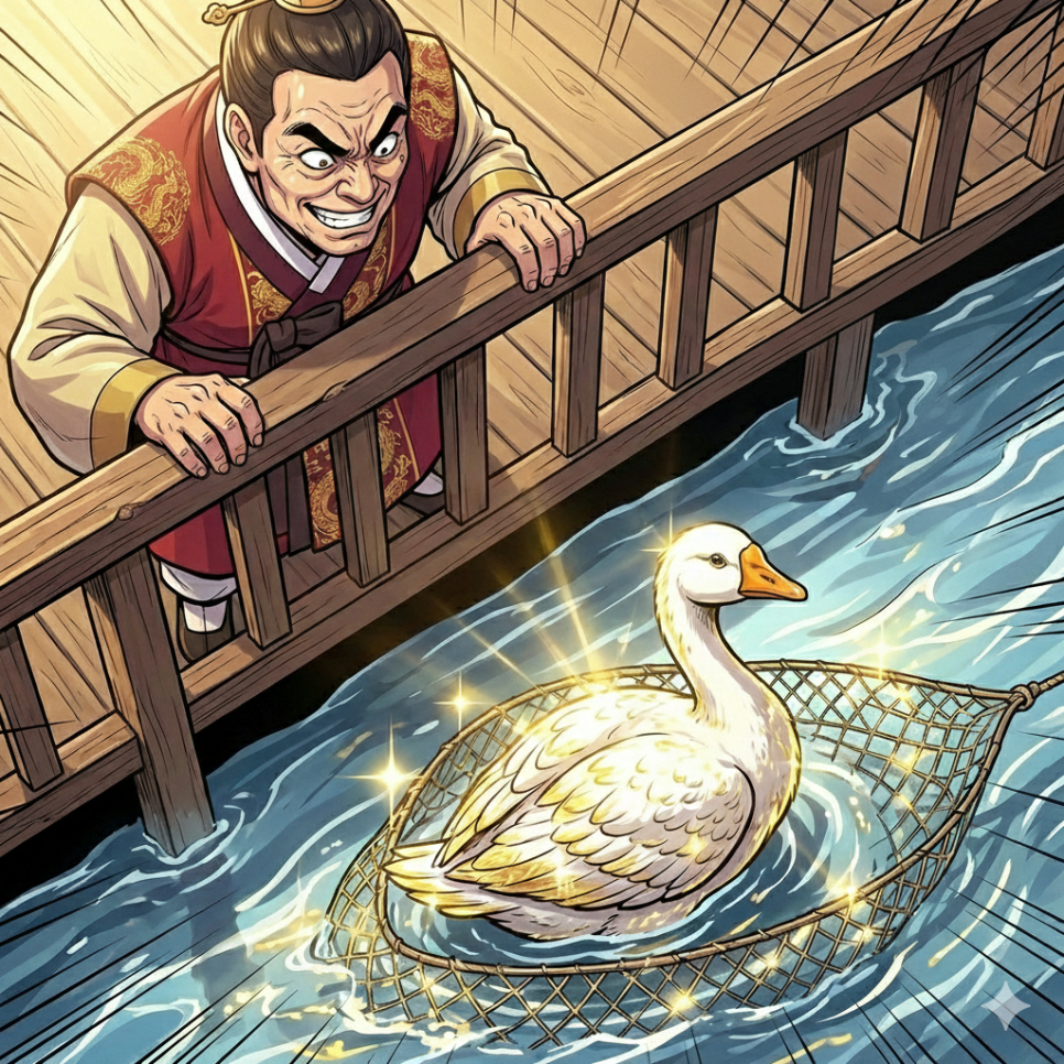 거위의 배 속은 텅 비어 있었어요. 황금은커녕 평범한 새의 내장만 있을 뿐이었답니다. "이럴 수가! 황금은 어디 있지?" 김 부자는 미친 듯이 거위의 배 속을 뒤적거렸지만 아무것도 없었어요. 거위는 이미 숨이 끊어져 축 늘어져 있었고, 다시는 황금알을 낳을 수 없게 되었답니다. 그제야 김 부자는 자신이 얼마나 어리석은 짓을 했는지 깨달았어요. "내가... 내가 무슨 짓을 한 거지?" 김 부자는 주저앉아 머리를 감싸 쥐었어요. 매일 아침 황금알을 낳아주던 고마운 거위를, 자신의 욕심 때문에 죽여버린 것이었어요. "만약 참았더라면, 계속 황금알을 받을 수 있었을 텐데..." 하지만 이미 늦었어요. 세상에는 되돌릴 수 없는 일들이 있답니다. 김 부자는 처음으로 자신의 욕심이 얼마나 무서운 것인지 알게 되었어요. 눈물이 주르르 흘러내렸지요.