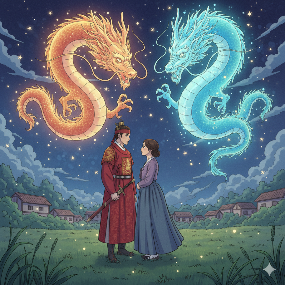 알영은 특별한 아이였지만, 마을 사람들의 사랑 속에서 평범하게 자라났습니다. 착한 마음씨와 지혜를 갖춘 아름다운 소녀로 성장한 알영은 어느 날 신라의 왕 혁거세를 만나게 됩니다. 혁거세 역시 알에서 태어난 신비로운 인물이었지요. 두 사람의 만남은 우연이 아니라 하늘이 정해준 운명이었습니다.