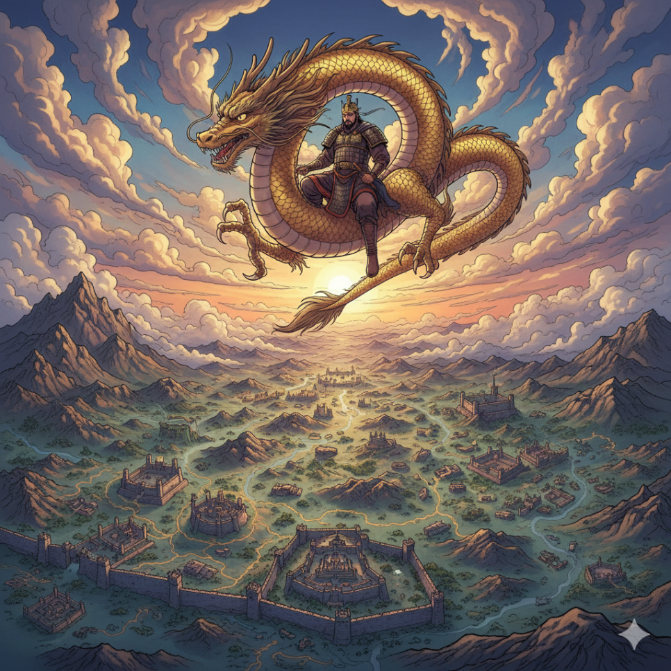 고구려가 나날이 번창하던 어느 날, 부여에 두고 온 아들 '유리'가 아버지를 찾아왔어요. 주몽이 떠날 때 부러뜨려 숨겨두었던 칼 조각을 들고 온 것이지요. 주몽은 눈물을 흘리며 아들을 반갑게 맞이했고, 유리는 고구려의 다음 왕이 되어 아버지의 뜻을 이어가기로 약속했어요. 나라의 기틀을 단단히 세운 주몽은 어느덧 마흔을 갓 넘긴 나이가 되었어요. 전설에 따르면, 주몽은 하늘에서 내려온 황룡을 타고 다시 하늘로 올라갔다고 해요. 비록 주몽은 곁을 떠났지만, 그가 세운 고구려는 이후 700년 동안이나 동쪽 땅에서 가장 용맹하고 찬란한 문화를 꽃피운 나라로 남았답니다. "활을 잘 쏘던 아이, 알에서 깨어난 영웅 주몽!" 그의 이야기는 오늘날까지도 우리 마음속에 뜨거운 용기와 자부심으로 살아 숨 쉬고 있습니다.