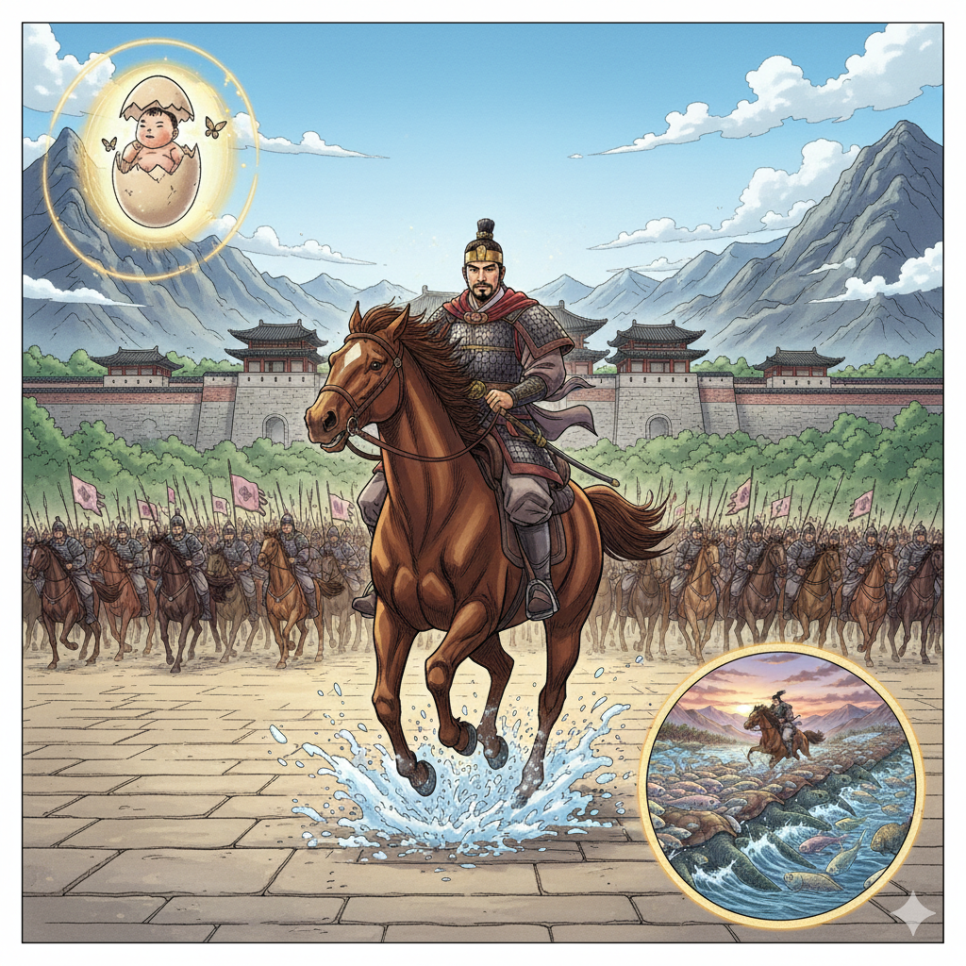 알 속에서 태어난 비범한 아기 주몽과 그의 탄생 비밀