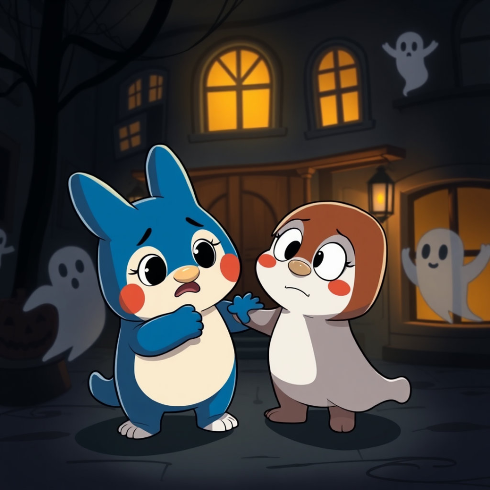 루피는 그 소문을 듣자마자 완전히 겁에 질려 뽀로로에게 매달렸어요. "뽀로로, 우리 절대 저 건물 근처에는 가지 말자! 정말 유령이 나올지도 몰라!" 루피의 커다란 눈에는 눈물이 그렁그렁 맺혔죠.