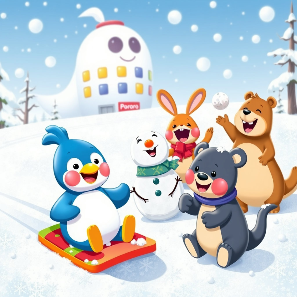 뽀롱뽀롱 숲은 언제나 평화롭고 즐거운 웃음소리가 가득한 곳이었어요. 뽀로로와 친구들은 눈썰매를 타거나 맛있는 음식을 함께 만들어 먹으며 매일 신나는 하루를 보냈죠. 그런데 어느 날, 뽀롱뽀롱 마을 외딴 곳에 이전에는 없던 이상한 건물이 뚝딱하고 나타났어요.