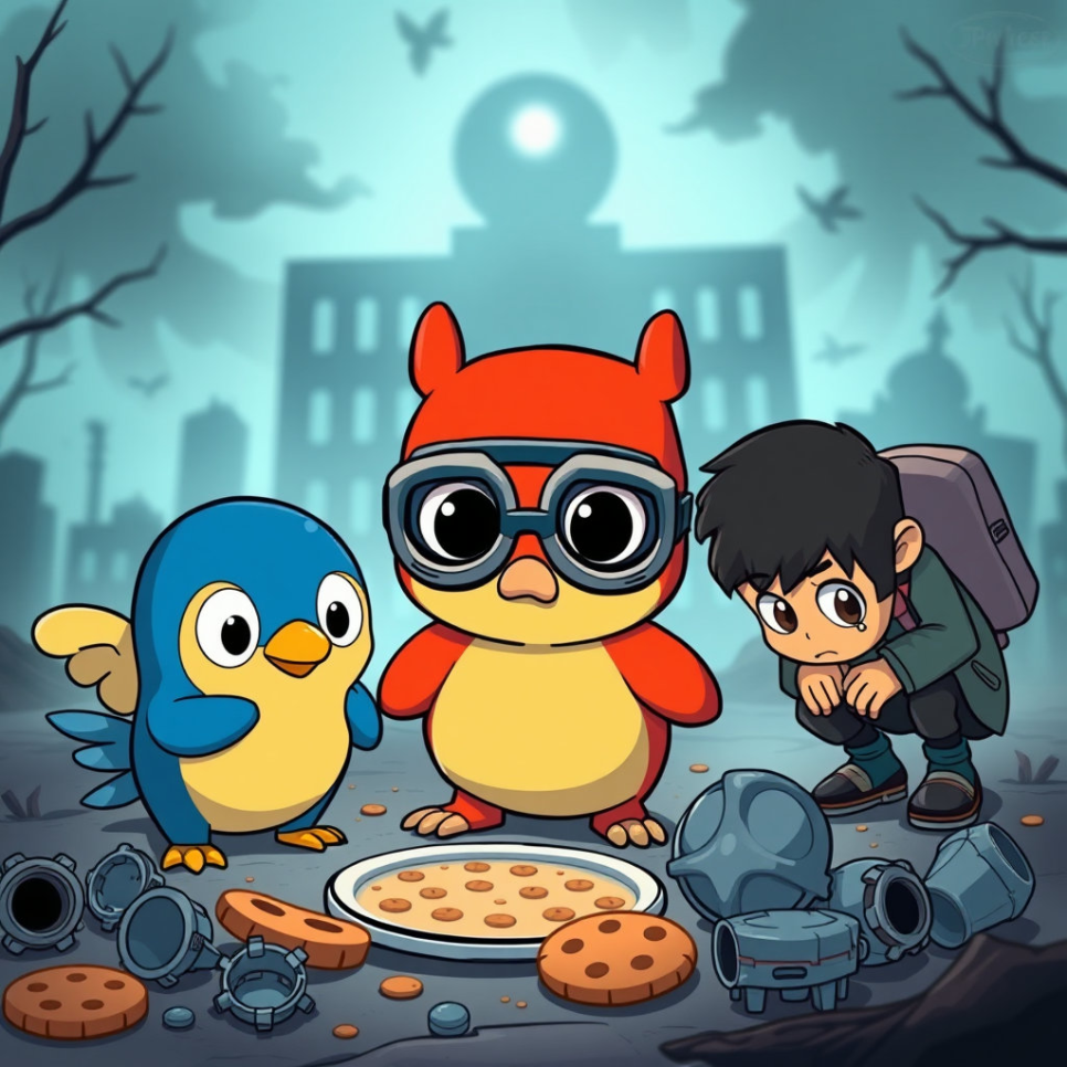 며칠 후, 뽀롱뽀롱 마을에서는 더욱 이상한 일들이 벌어지기 시작했어요. 뽀로로의 아끼던 고글이 갑자기 사라지고, 루피가 정성껏 구운 맛있는 쿠키들이 감쪽같이 없어지는가 하면, 에디가 발명하던 신기한 로봇 부품이 사라지는 일까지 벌어진 거예요!