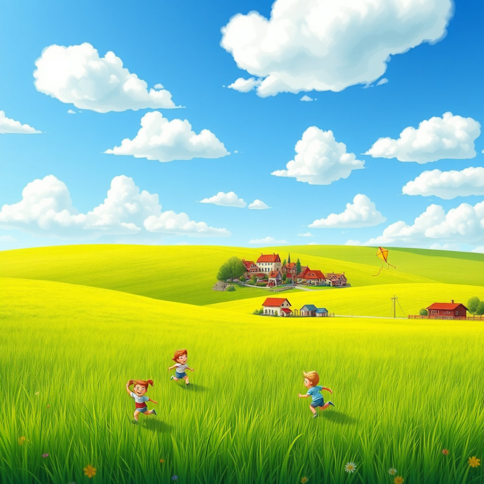 푸른 들판과 마을은 앞으로도 계속 자라날 거예요. 아이들은 새로운 꿈을 꾸며 자라나고, 모두가 함께 행복한 내일을 만들어 갈 거예요. 들판 위에 피어난 작은 씨앗처럼, 희망의 꿈도 자라난답니다.