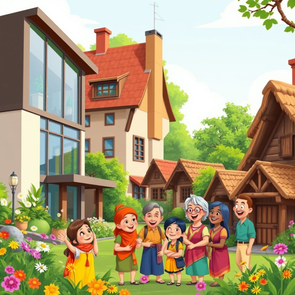 마을 사람들은 모두 하나의 큰 가족처럼 서로 도우며 살았어요. 농사를 짓고, 서로의 집을 돌보고, 기쁠 때나 슬플 때 함께했죠. 아이들도 어른들도 서로 친구가 되어 웃음꽃을 피웠답니다. 이렇게 끈끈한 정이 마을을 더욱 따뜻하게 만들었어요.