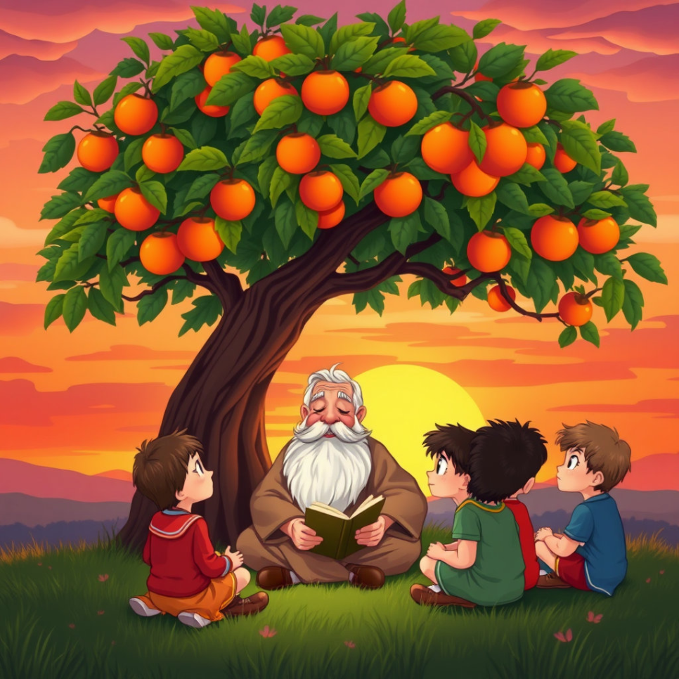 아이들이 혼난 후, 마을 할아버지께 듣는 포도밭의 전설과 과수원의 지혜