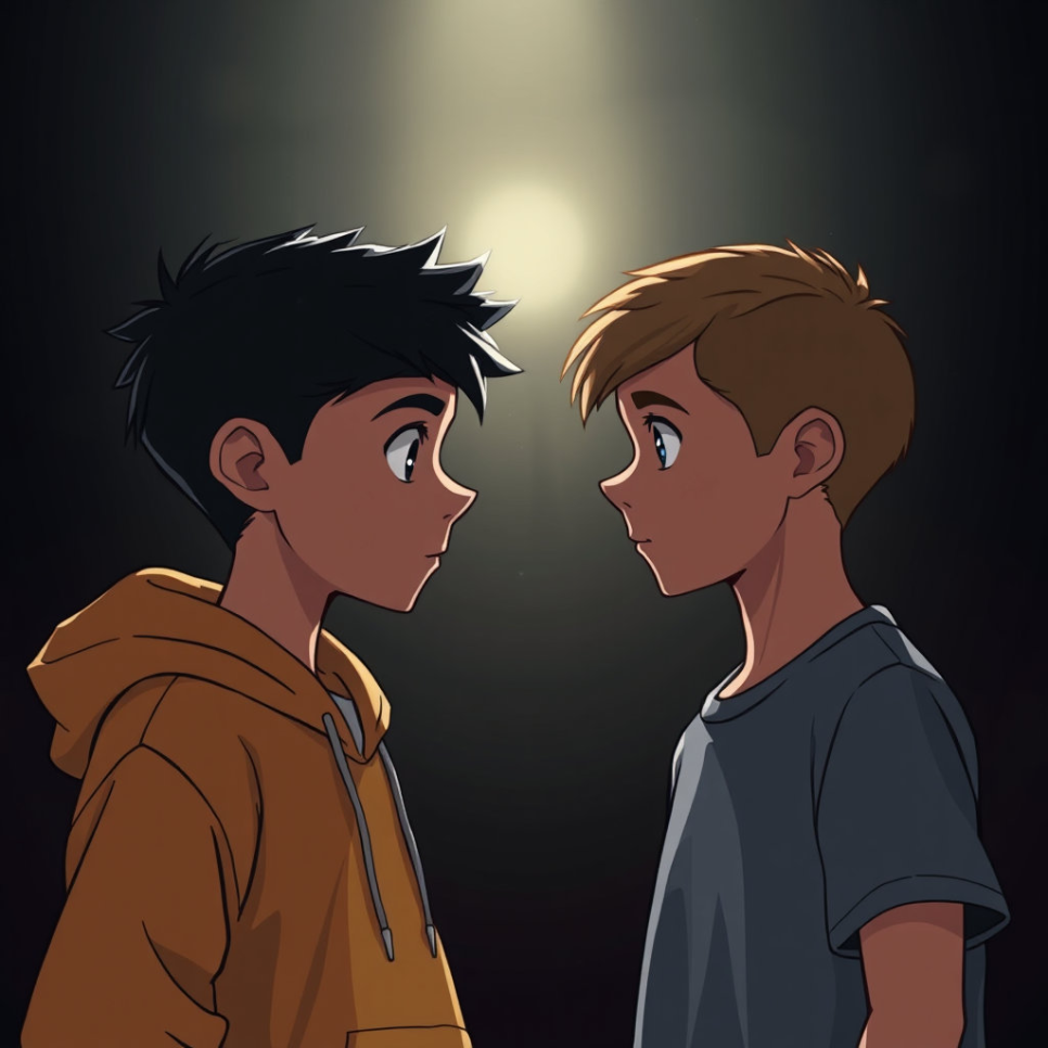 미카는 하늘을 나는 꿈을 꾸던 소년 무용수였어요. 어느 날, 비행기가 뜻하지 않은 사고로 낯선 마을에 떨어졌죠. 낯선 곳에서 미카는 무서웠지만, 발레화 끈을 단단히 묶고 조용히 연습을 시작했어요. 그의 몸짓은 마치 별처럼 빛나고 있었답니다. 그때, 우연히 탭댄스를 추던 레온과 마주쳤죠. 두 사람의 춤은 서로 달랐지만, 무언가 닮은 점이 있었어요.