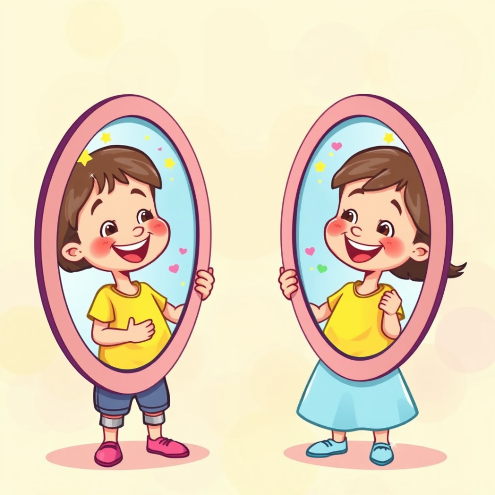 아이들은 거울을 들고 진짜 자신과 마주했어요. 부자 동네에서 보여주는 모습과 달리, 진짜 내 모습은 용기 있고, 공정함을 사랑하는 아이였답니다. 서로의 거울을 보며, “우리 모두 다르지만 소중해!”라고 말했죠.