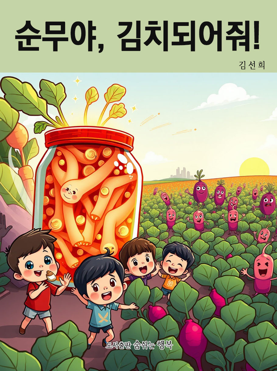 강화도는 바다로 둘러싸인 작은 섬이지만, 그 안에는 특별한 자연의 선물이 숨겨져 있습니다. 바로 강화도에서만 자라는 ‘순무’입니다. 『순무야, 김치되어줘!』는 짭짤한 바닷바람과 황토밭이 만나 순무를 어떻게 건강하고 맛있게 키우는지를 어린이들이 쉽게 이해할 수 있도록 풀어낸 동화책입니다. 작은 씨앗이 바람과 땅의 도움으로 싹을 틔우고 자라나는 모습부터, 단단하고 달콤한 순무가 김치가 되어 마을 사람들의 식탁에 오르기까지의 과정이 사랑스럽고 생생한 이야기로 그려집니다.