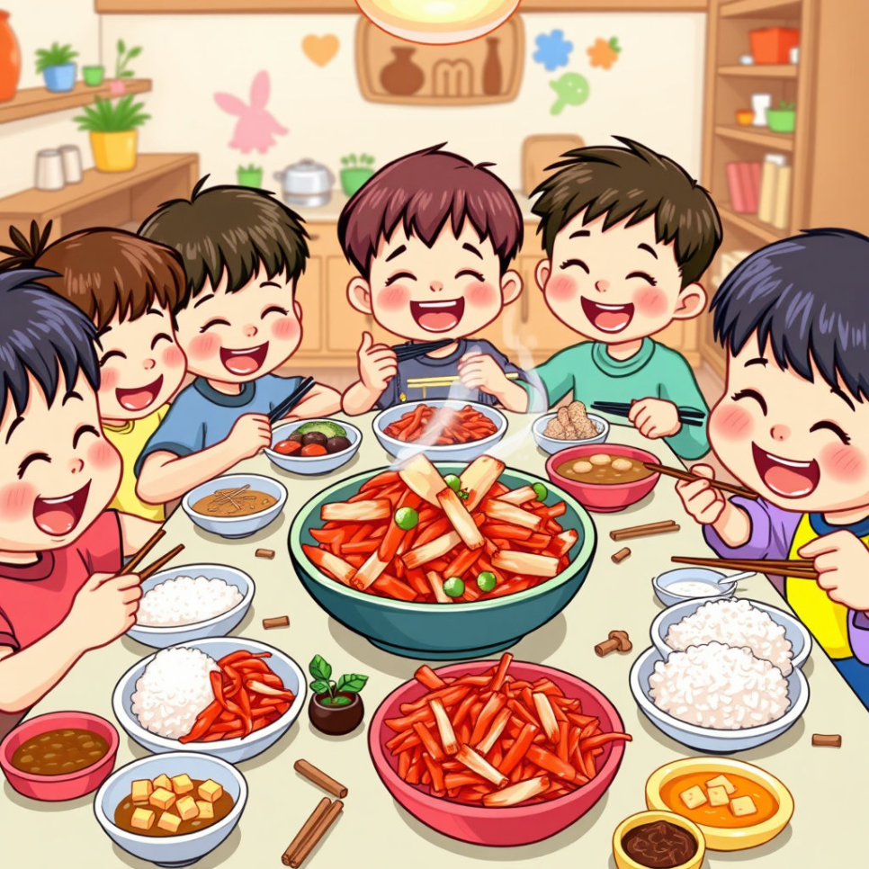 김치 냄새가 집 안 가득 퍼지자 모두가 기분 좋아졌답니다.
