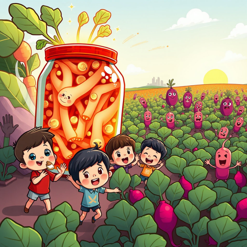 강화도의 바람과 땅, 그리고 사람들의 정성으로 자란 순무는 오늘도 우리 식탁 위에서 맛있는 김치로 변해 우리를 행복하게 해줍니다. 작은 씨앗 하나가 바람을 만나 뿌리를 내리고, 마을 사람들의 사랑을 받으며 자라난 순무처럼 우리도 서로 돕고 아끼며 살아간다면 어떤 어려움도 이겨낼 수 있을 거예요. 자연이 준 선물에 감사하며, 강화도 순무김치처럼 따뜻하고 소중한 마음을 키워가는 어린이들이 되길 바랍니다. 순무의 이야기는 여기서 끝나지만, 여러분의 마음 속에서 계속 자라나기를 기대할게요.