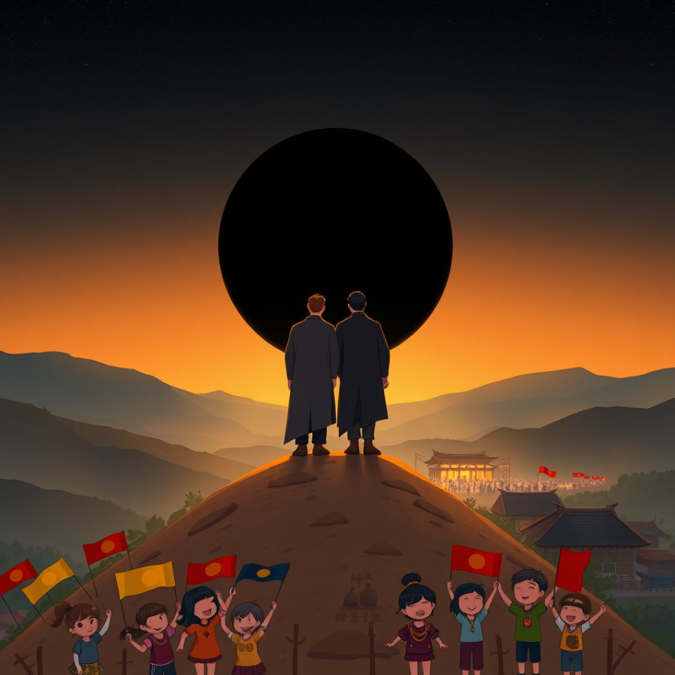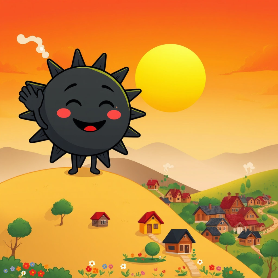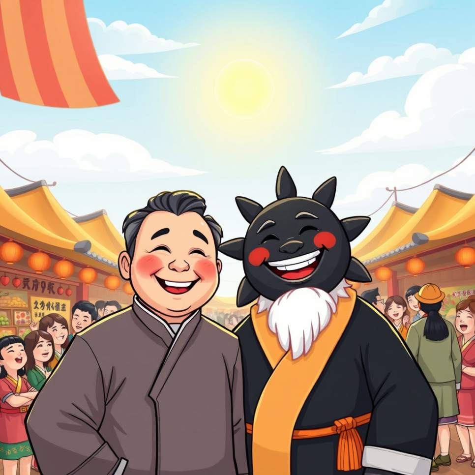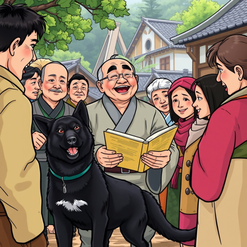 마을은 다시 평화를 되찾았어요. 사람들은 웃으며 장을 보고, 아이들은 시장터에서 뛰놀았지요. 봉이 김선달은 여전히 유쾌한 말솜씨로 모두를 웃게 했고, 검은해는 조용히 마을을 지키며 사람들을 도왔어요.