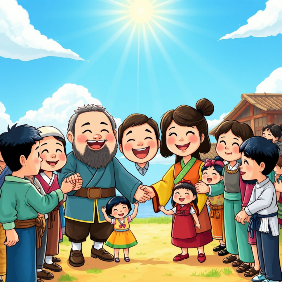 “진짜 보물은 바로 사람들의 마음이야.” 김선달이 웃으며 말했을 때, 검은해는 고개를 끄덕였어요.
