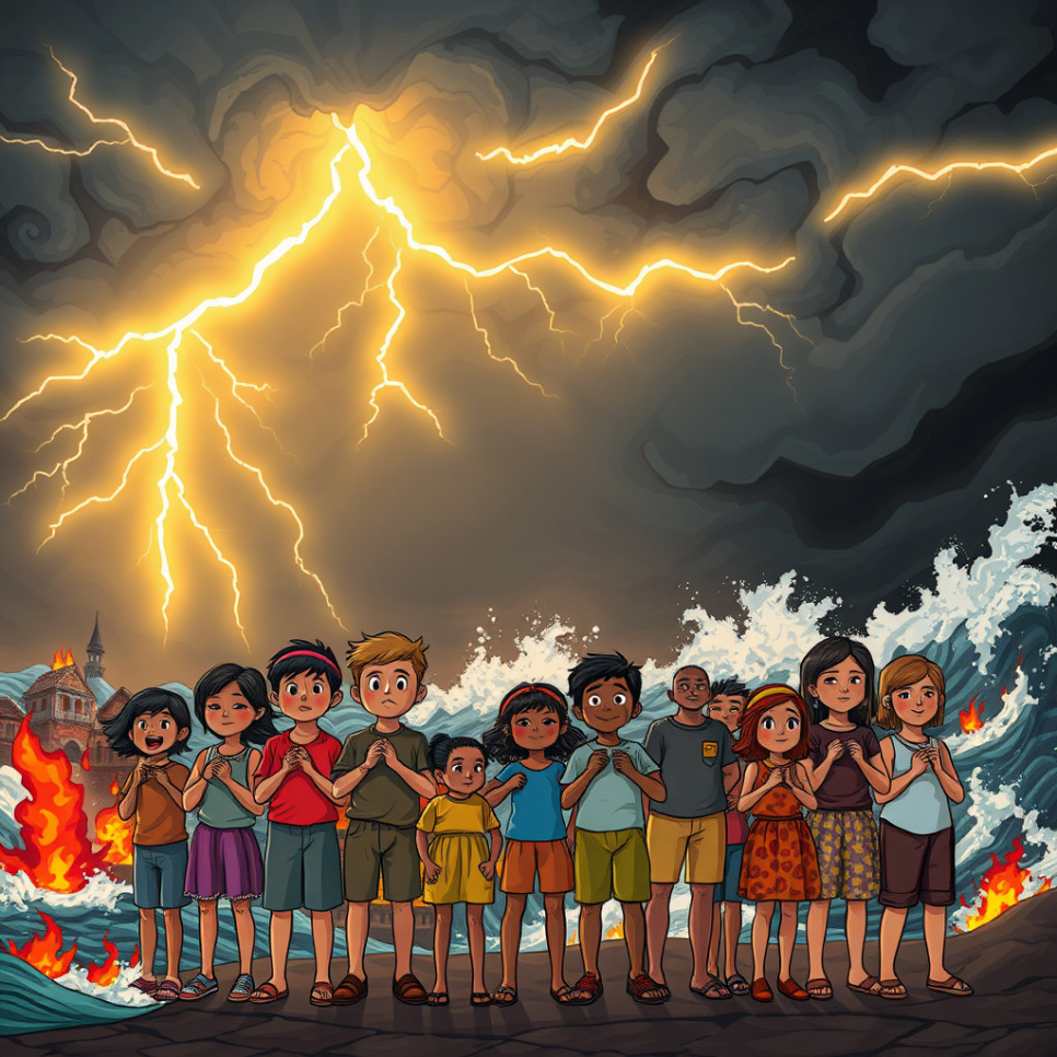 자연은 우리 친구이자 가족과 같아요. 때로는 무서운 불벼락과 물벼락을 보내기도 하지만, 우리가 사랑하고 아껴주면 자연도 우리를 지켜준답니다. 어린이 여러분, 오늘부터 작은 영웅이 되어 자연을 보호하고, 서로 돕는 마음을 잊지 말아요. 함께라면 어떤 어려움도 이겨낼 수 있어요. 우리 모두 더 밝고 건강한 지구를 만들어가요!