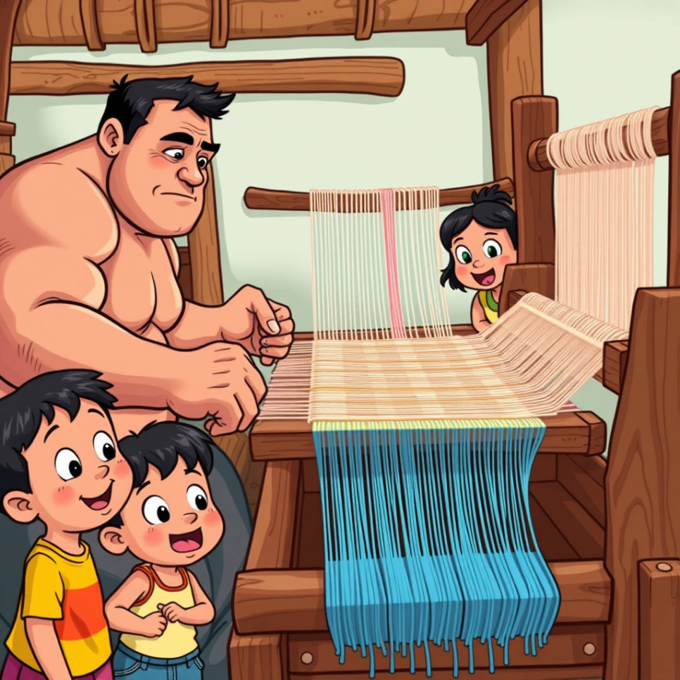 염색한 대나무 실은 이제 베틀이라는 특별한 기계로 짜야 해요. 베틀은 오래된 나무로 만들어졌고, 커다란 손잡이를 힘껏 돌려야 천이 만들어져요. 사람들은 서로 도와가며 힘을 모아 베틀을 돌렸어요. 베틀에서 짜여 나오는 천은 점점 모양이 잡히고 단단해졌죠. 이 과정은 오래 걸리고 아주 힘들지만, 모두가 땀 흘리며 최선을 다했답니다. 아이들은 고된 일도 신기한 베틀 소리와 함께 즐겁게 지켜봤어요.