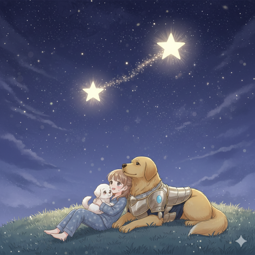 별이는 조용히 꼬리를 흔들며 하늘을 올려다봤어요.