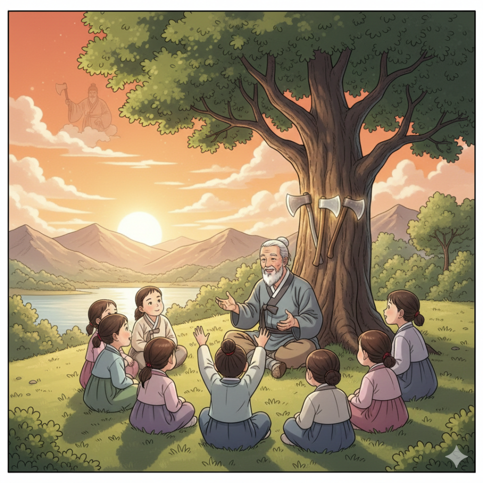나무꾼은 손자의 머리를 쓰다듬으며 말했습니다. "그래, 네가 정직하게 살면 그것만으로도 이미 가장 큰 보물을 가진 거란다. 금도끼나 은도끼보다 훨씬 더 값진 보물을 말이야."