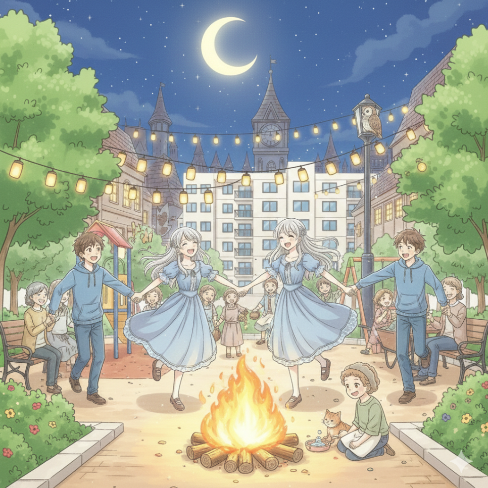마지막 날, 루나는 마을 축제에 참여했어요. 음식, 놀이, 음악을 나누며 모두 웃고 있었죠.
