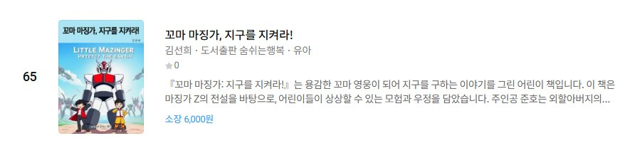 | 리디북스 아동만화, 용감한 꼬마 개미, 어린이청소년/유아...주간 베스트 1위...베스트셀러 링크들 (0) | 2026.02.07 |