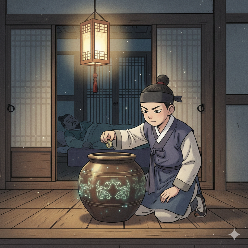 부자는 그 말을 무시하고 밤낮으로 항아리에 돈을 넣었어요. 하지만 더 이상 돈이 늘어나지 않았지요. 화가 난 부자가 항아리를 깨뜨리려는 순간, 항아리 밑바닥에서 쪽지가 나왔어요. "진짜 보물은 나누는 마음입니다. 당신이 준 돈은 가난한 이웃들에게 전했습니다."