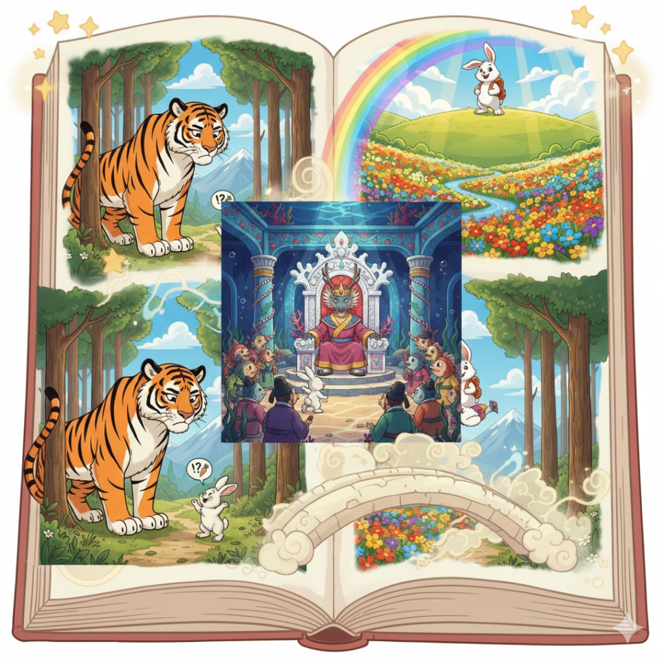 배고픈 호랑이를 만났을 때, 교활한 여우에게 쫓길 때, 욕심쟁이 늑대를 마주했을 때도 토끼는 힘으로 맞서지 않습니다. 대신 침착하게 생각하고 창의적인 방법을 찾아냅니다. 용왕님의 용궁에서도, 산불이 난 숲속에서도 토끼의 지혜는 빛을 발합니다.