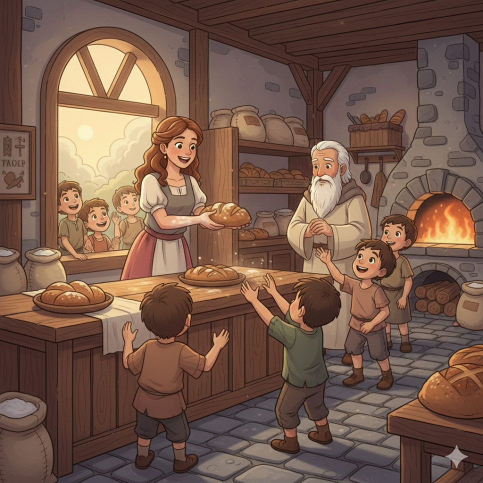 현자는 작은 빵집 앞에서 멈췄습니다. "이 빵을 한번 만들어보시겠습니까?"