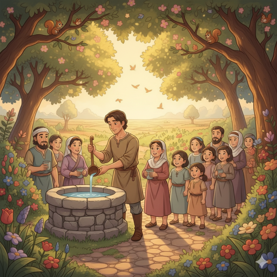 마을 사람들은 상인을 설득했고, 상인은 부끄러워하며 물러났습니다. 그러자 우물의 물은 다시 가득 차올랐습니다. 아흐마드는 우물의 수호자가 되어, 모든 사람이 공평하게 물을 나눠 쓸 수 있도록 지켰습니다.