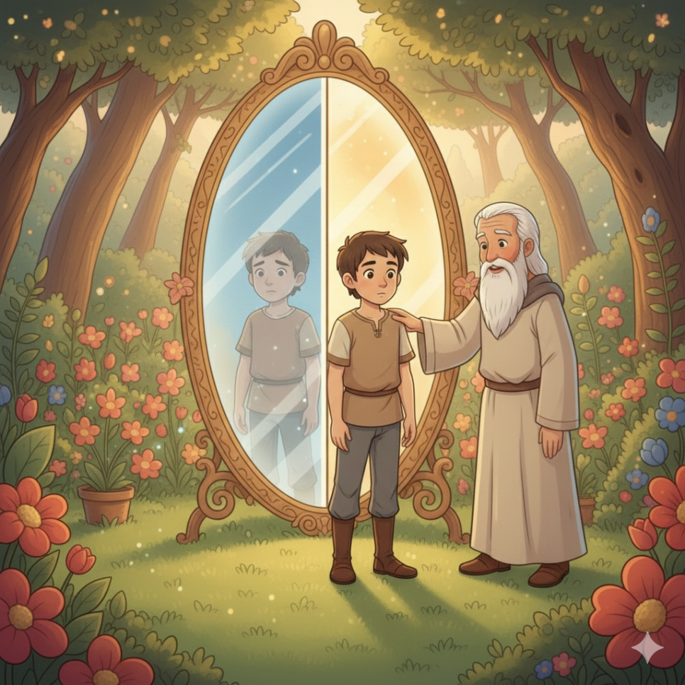 항상 거짓말하는 소년이 현자의 거울을 통해 변화하는 이야기