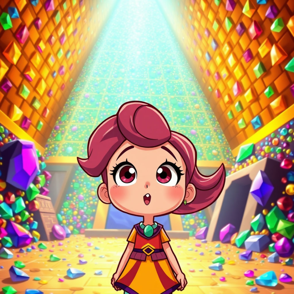 피라미드 안에는 파라오가 사랑한 보물과 마법 아이템들이 가득했어요. 리나는 반짝이는 금, 보석, 고대의 지도, 그리고 마법의 주문서들을 보았죠. 이 보물들은 파라오가 저승에서도 쓸 수 있도록 함께 묻혔답니다. 리나는 보물 하나하나에 담긴 이야기를 들으며 옛 이집트의 풍부한 문화를 상상했어요.