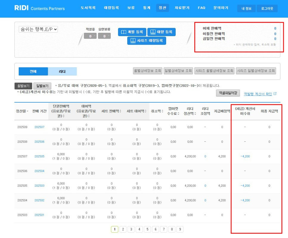 판매금이 0원이 나올때가 많았다 입니다.
