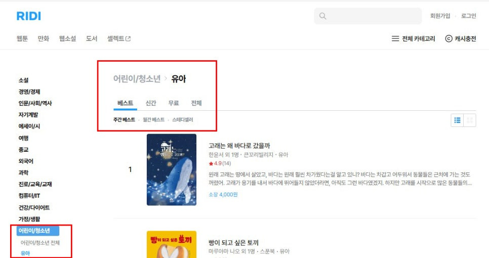 어린이청소년 유아 책 베스트셀러