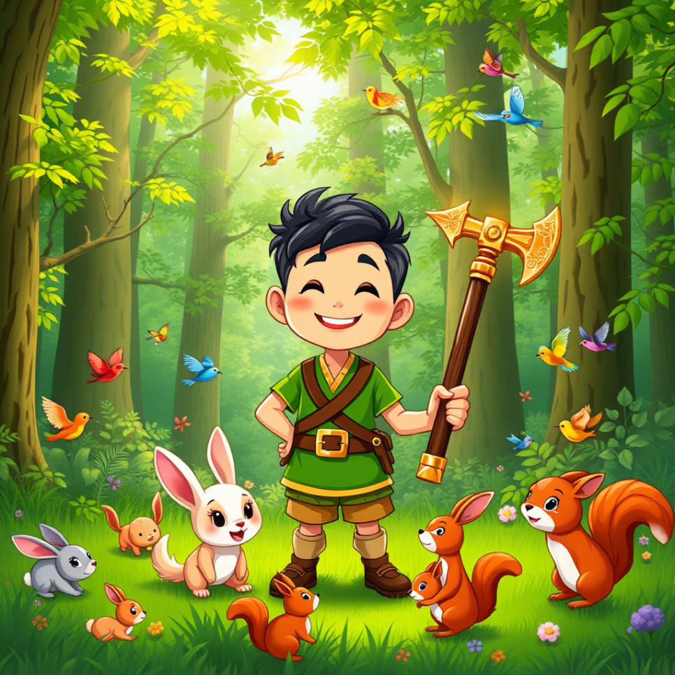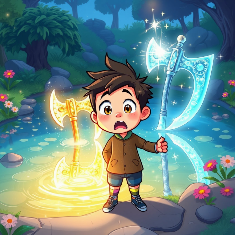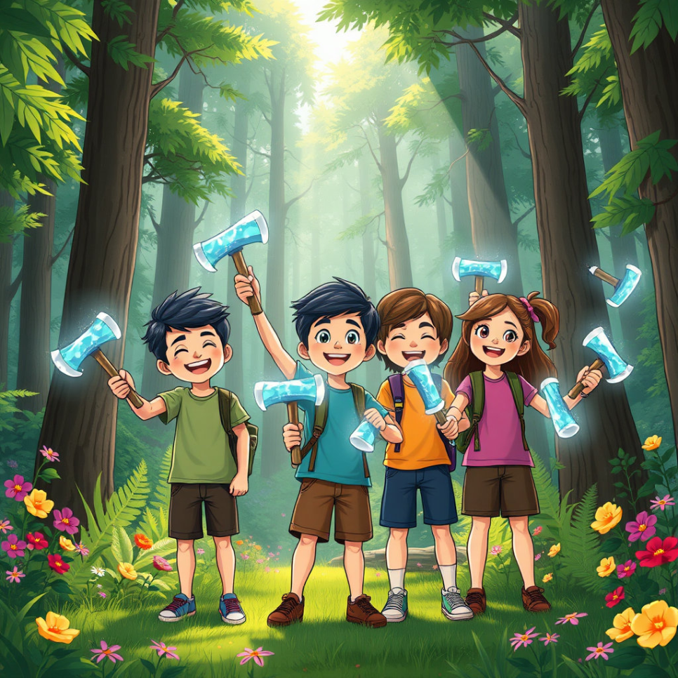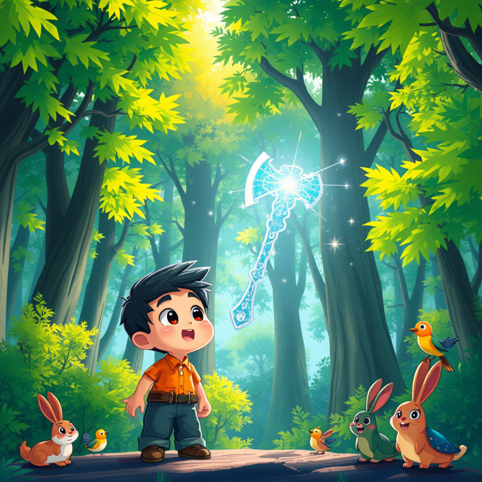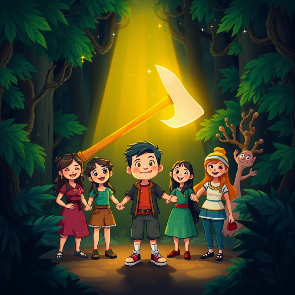 준이는 반짝이는 도끼를 통해 정직과 용기의 소중함을 깨달았어요. 욕심을 부리기보다는 친구들과 마음을 나누고, 어려울 때는 서로 도우며 함께하는 힘이 가장 강하다는 것도 배웠죠. 이제 준이와 친구들은 언제나 진실한 마음으로 숲과 마을을 지키며, 반짝반짝 빛나는 도끼처럼 따뜻한 빛을 나누며 살아갈 거예요. 우리도 준이처럼 정직하고 용감한 마음을 잊지 말아요!