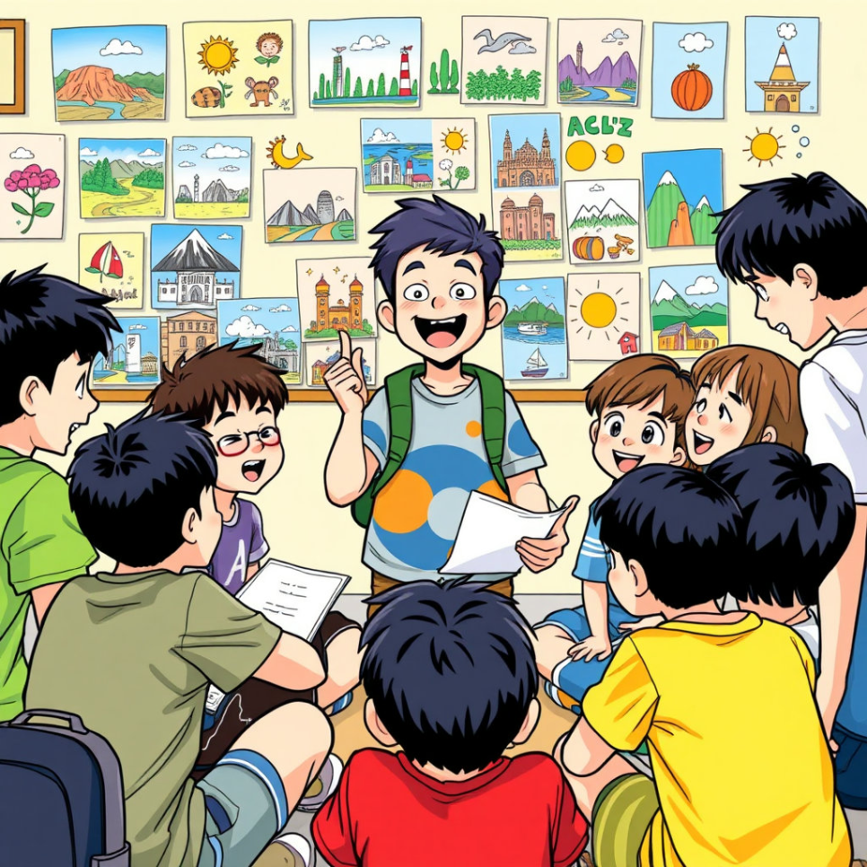 다음으로 민준이와 친구들이 향한 곳은 아시아의 한 작은 학교였습니다. 이곳의 아이들은 공부에 대한 열의가 뜨거웠지만, 책과 선생님이 부족한 환경이었죠. 수아는 아름다운 피아노 연주로 아이들의 마음을 열었고, 유진이는 신나는 K-팝 댄스를 가르치며 활기를 불어넣었습니다. 민준이는 아이들에게 한국어와 간단한 수학을 가르치는 역할을 맡았습니다.