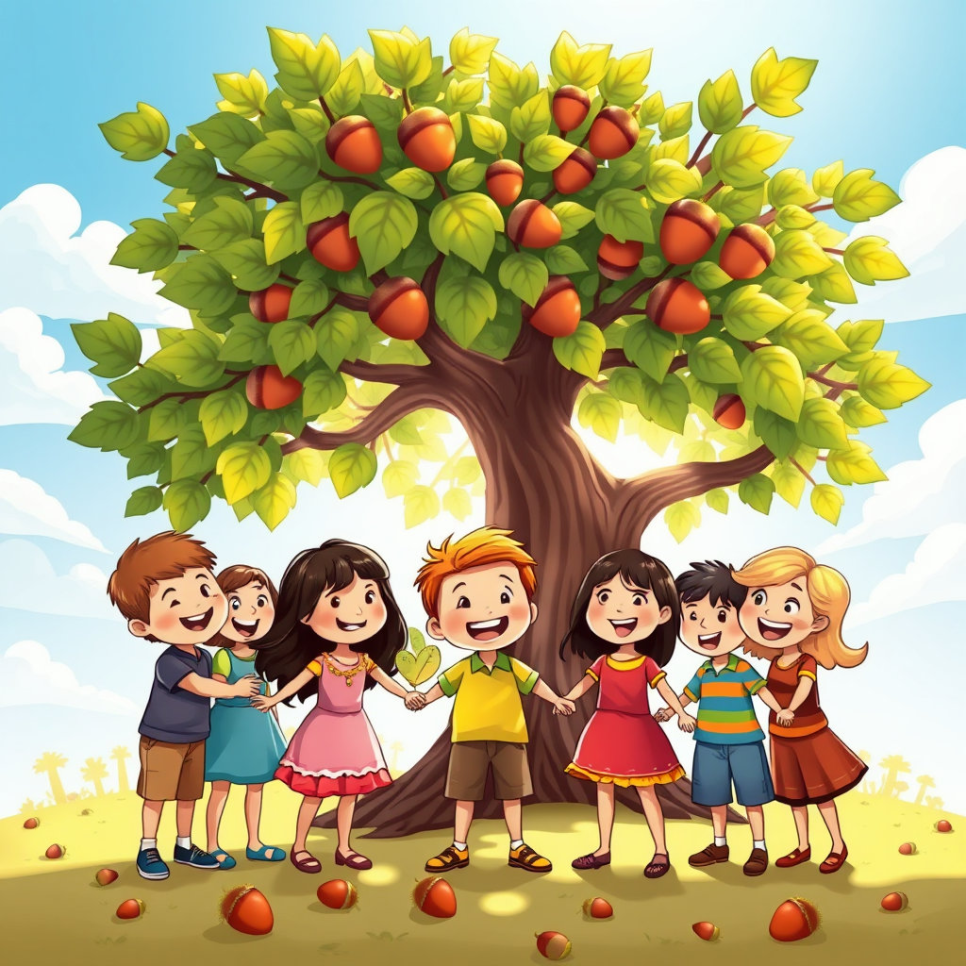 토리는 아이들을 데리고 자신이 숨겨 놓은 도토리 중 남은 것을 보여주었어요. "이 도토리는 너희와 함께했던 소중한 기억이야. 내년에도 우리 또 함께하자!" 아이들은 도토리 나무 아래에서 서로 손을 잡고 약속했어요. 자연을 사랑하고, 작은 생명들과 친구가 되어 평화로운 숲을 지키기로요.
