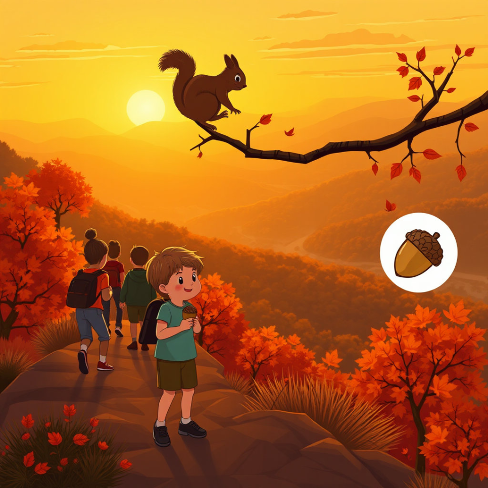 도토리 산의 약속은 가을 산을 배경으로 펼쳐지는 따뜻한 자연 우화입니다. 호기심 많은 아이들이 산속 여행 중 작은 다람쥐를 만나게 되고, 그 다람쥐와 함께 도토리의 의미, 가을의 준비, 겨울을 나는 법, 자연과 생명의 순환에 대해 배우게 됩니다.