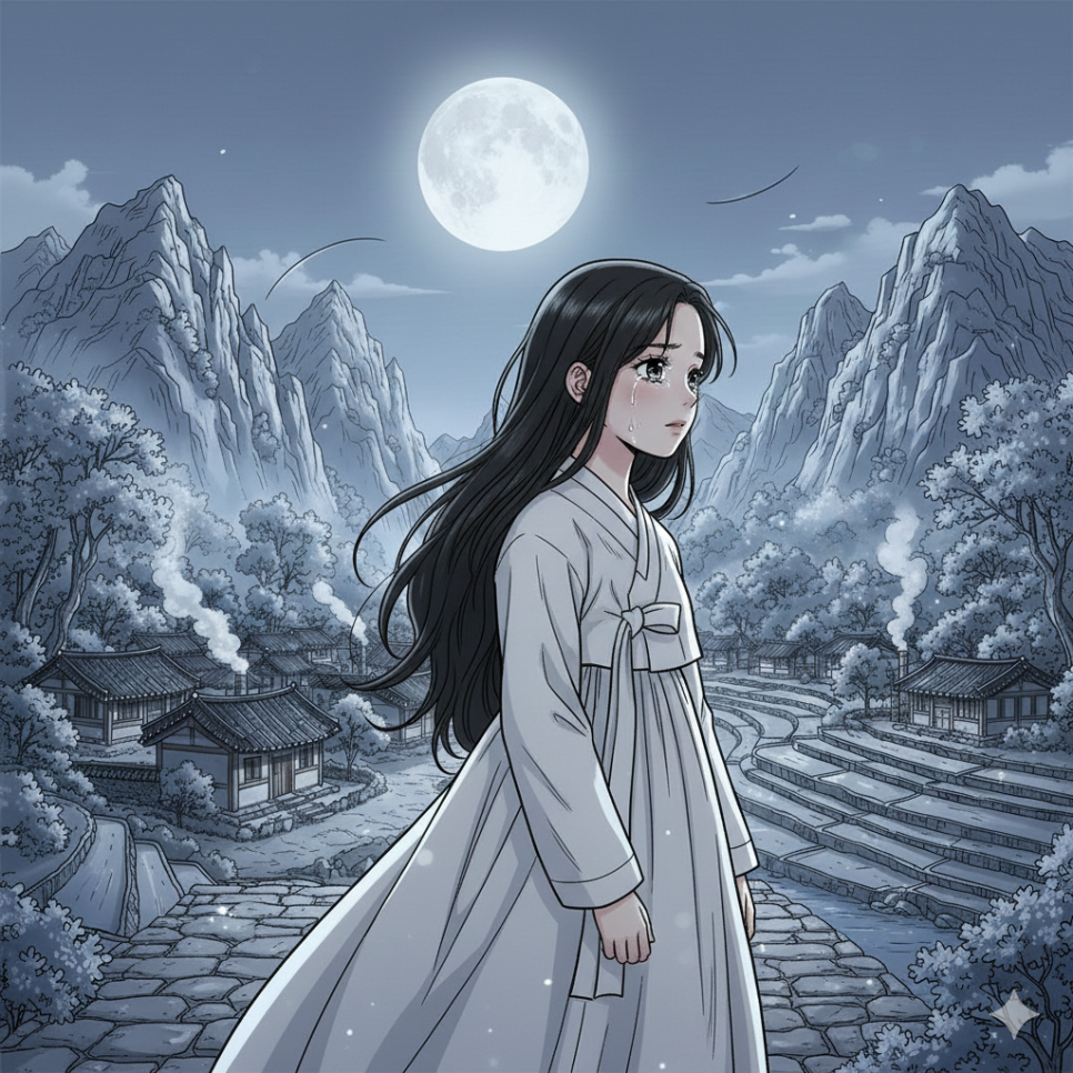 옛날 산과 들이 고요히 숨 쉬던 작은 마을에 이상한 소문이 퍼집니다. 달이 가장 둥글게 뜨는 날이면 마을 어귀에 하얀 치마를 입은 소녀가 나타난다는 것이었습니다. 사람들은 그녀를 처녀귀신이라 부르며 겁을 냅니다. 그러나 용기 있는 아이 민우는 달빛 아래 서 있는 소녀의 얼굴에서 공포 대신 깊은 외로움과 슬픔을 발견합니다.