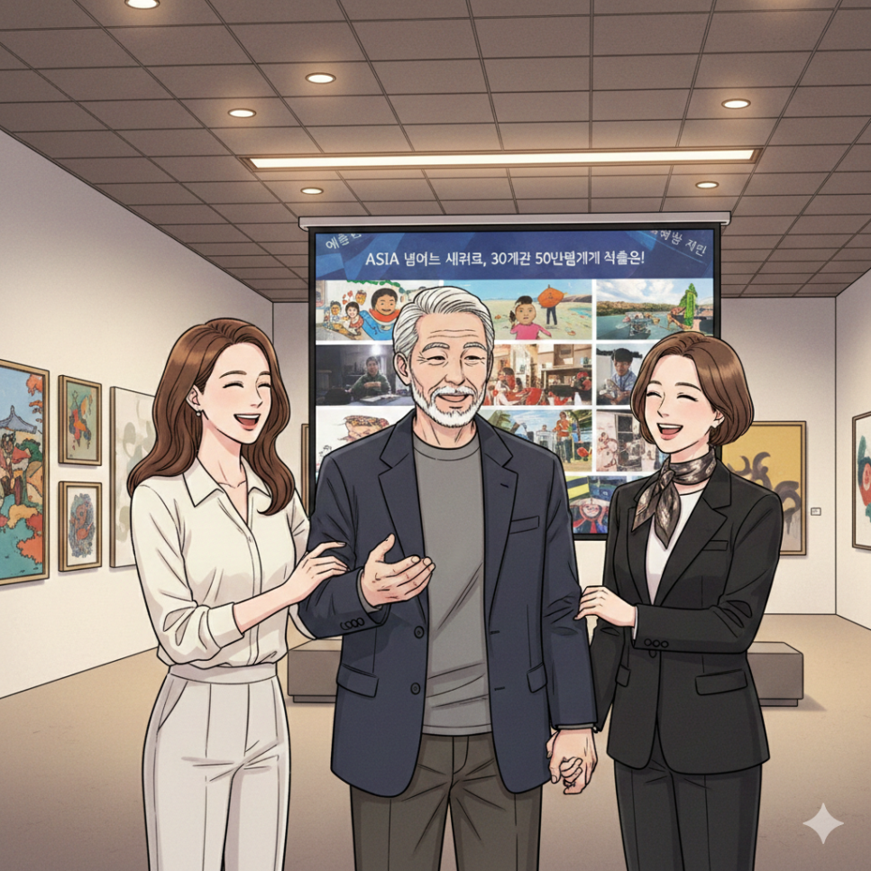 갤러리 한쪽에서 아버지 강태수가 손님들과 이야기를 나누고 있었다. 69세의 나이에도 눈빛은 여전히 빛났다. 그는 여전히 매일 그림을 그렸다. 이제는 대한민국을 대표하는 화가 중 한 명으로 불렸다.