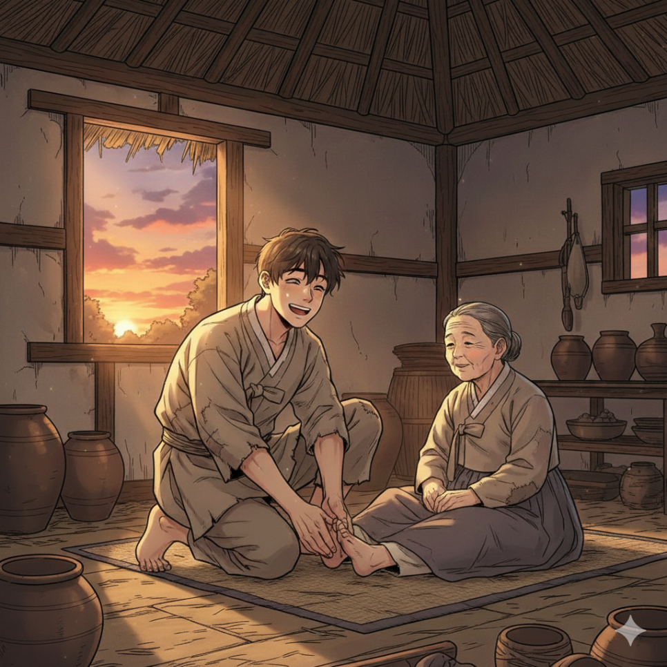 하지만 밤이 되면 온달은 어머니의 발을 꼭 잡고 말했답니다.