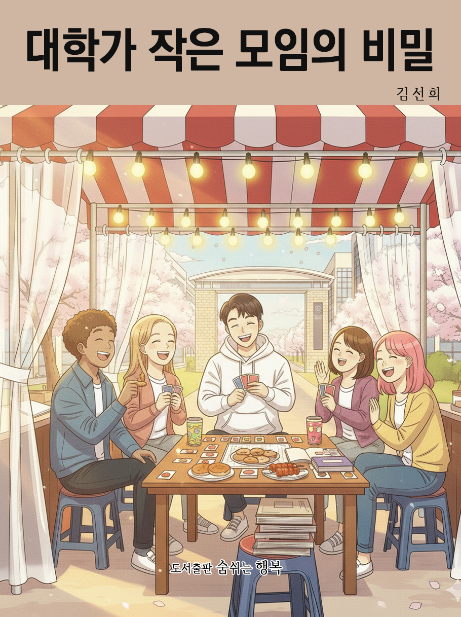 대학가 작은 모임의 비밀은 새로운 환경에 들어선 민재가 대학 생활을 시작하며 겪는 다양한 경험과 친구들과 함께 만드는 특별한 공간을 담은 그림동화책입니다. 캠퍼스는 처음엔 넓고 낯설게 느껴지지만, 민재는 점점 친구들을 만나고, 함께 시간을 보내며 자신만의 작은 모임을 발견합니다. 이 모임의 중심은 포장마차처럼 꾸며진 작은 공간으로, 공부하다 지친 날에도 잠시 쉬어갈 수 있고, 서로의 고민을 나누며 웃음을 공유할 수 있는 장소입니다. 친구들은 간식을 나누고, 소소한 게임을 즐기며 웃음꽃을 피우고, 캠퍼스 축제를 준비하며 협력과 즐거움의 가치를 배우게 됩니다. 시험에서의 작은 성공도 함께 축하하며, 서로에게 힘이 되어주는 경험을 통해 우정과 배려의 중요성을 자연스럽게 익히게 됩니다.
