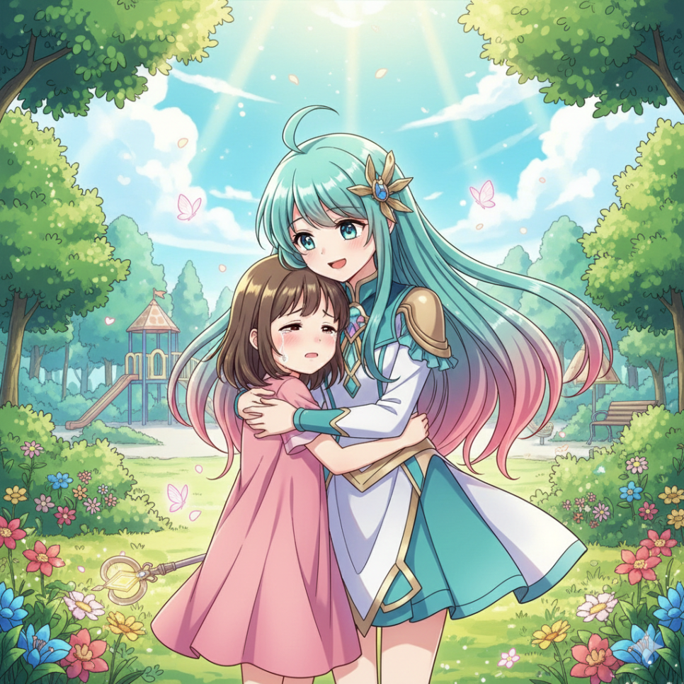 어느 날, 세리에게 큰 시험이 다가왔어요. 친구들이 위험에 빠졌을 때, 마법을 쓰지 않고 자신의 힘과 용기로 지켜야 했지요. 세리는 달려가 손을 내밀고, 넘어지는 수호를 꽉 붙잡았어요. 마법보다 중요한 건 용기와 믿음이라는 걸 알게 되었답니다. 친구들은 세리에게 환하게 웃으며 말했어요. “넌 마법이 없어도 최고의 친구야!”