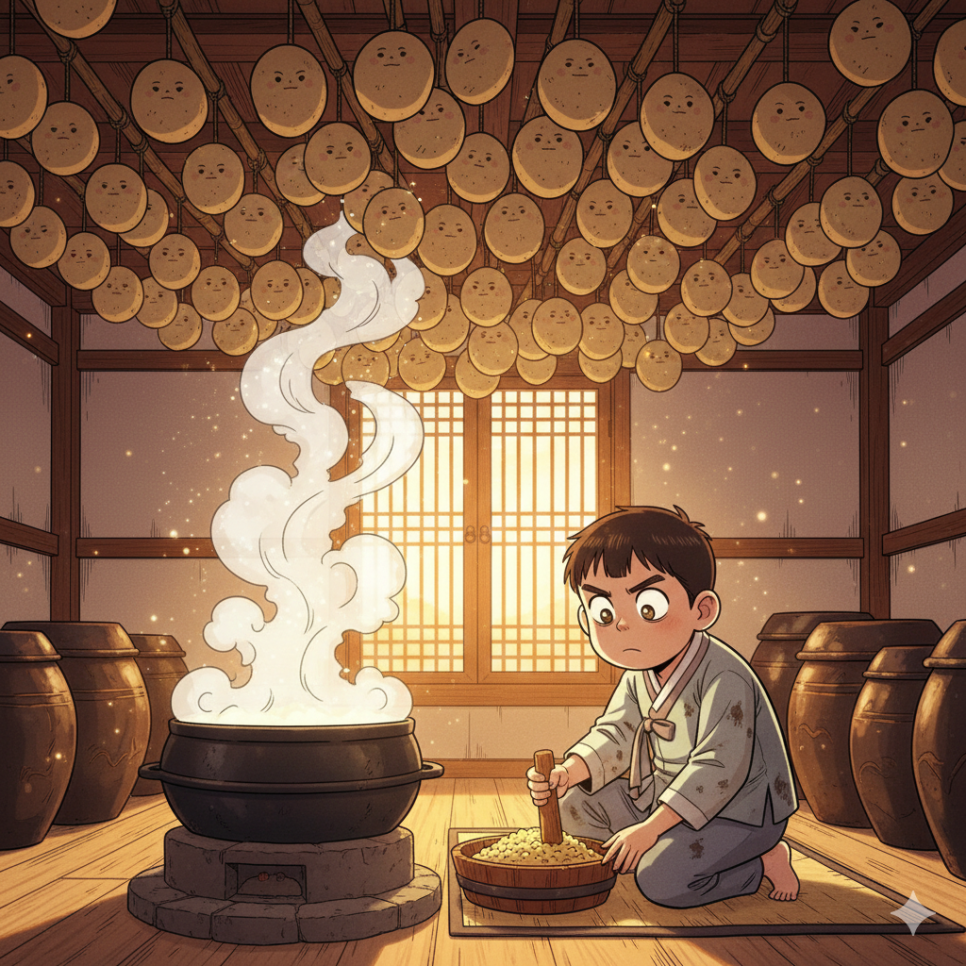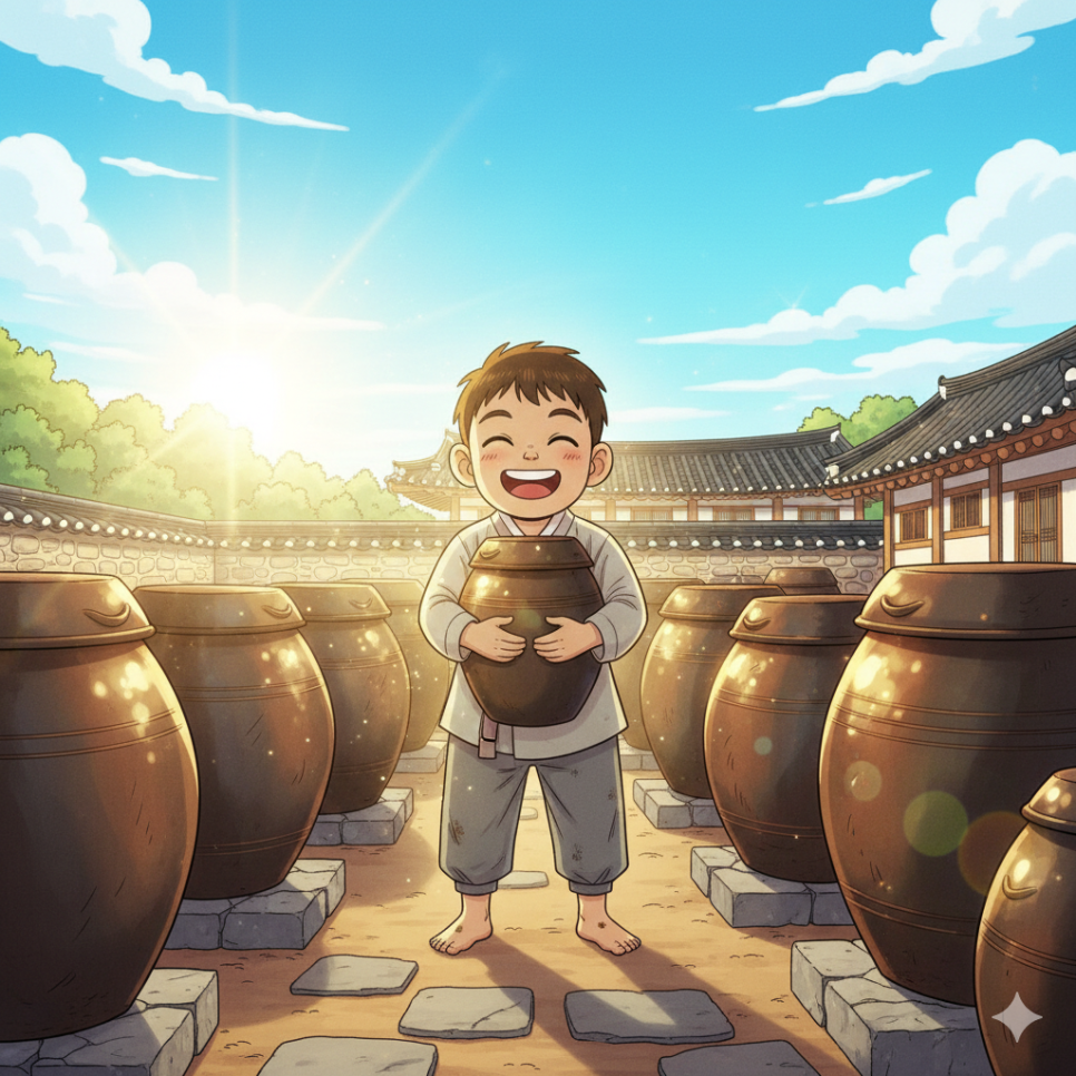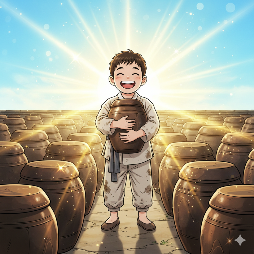 마을 사람들은 이제 그를 “게으름뱅이”라 부르지 않습니다. 대신 “장맛 좋은 청년”이라 부릅니다. 장독대에는 늘 햇살이 머물고, 항아리마다 깊은 향이 익어갑니다.