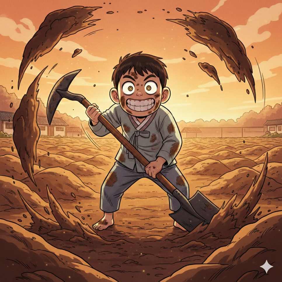 황금은 안 나왔지만 땅은 푹신푹신해졌다.